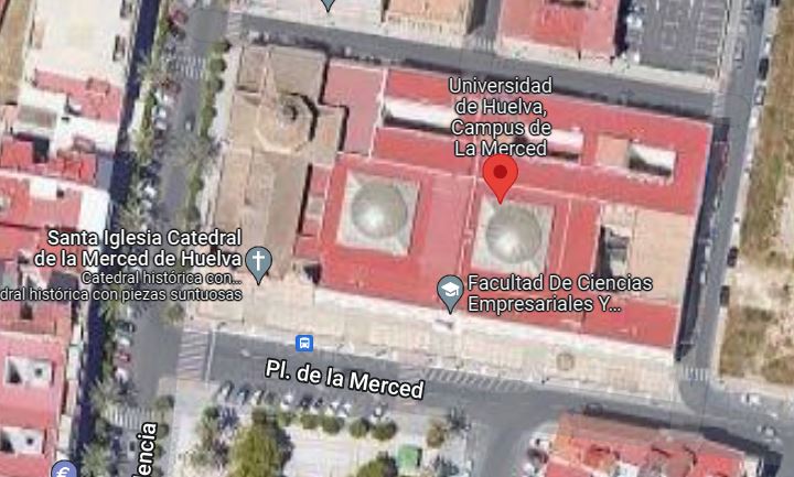 El conjunto formado por la Iglesia de Nuestra Señora de la Merced y el convento, actual sede de la Facultad de Ciencias Empresariales y Turismo de la Universidad de Huelva, se ubican en el centro de la ciudad de Huelva frente a una plaza que recibe el mismo nombre.