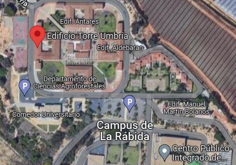 El inmueble se encuentra en el extremo noroeste del Campus universitario de La Rábida, siendo uno de los antiguos edificios que constituían la residencia universitaria y formando parte de un conjunto de cuatro pabellones perimetrales y otro central de una planta.